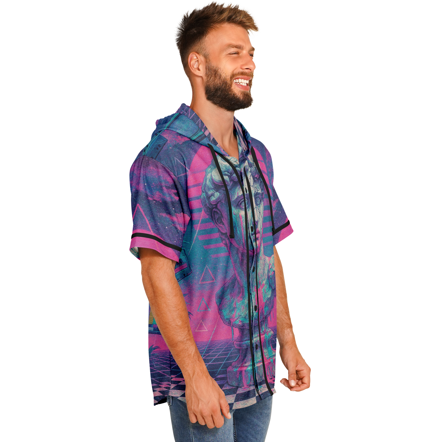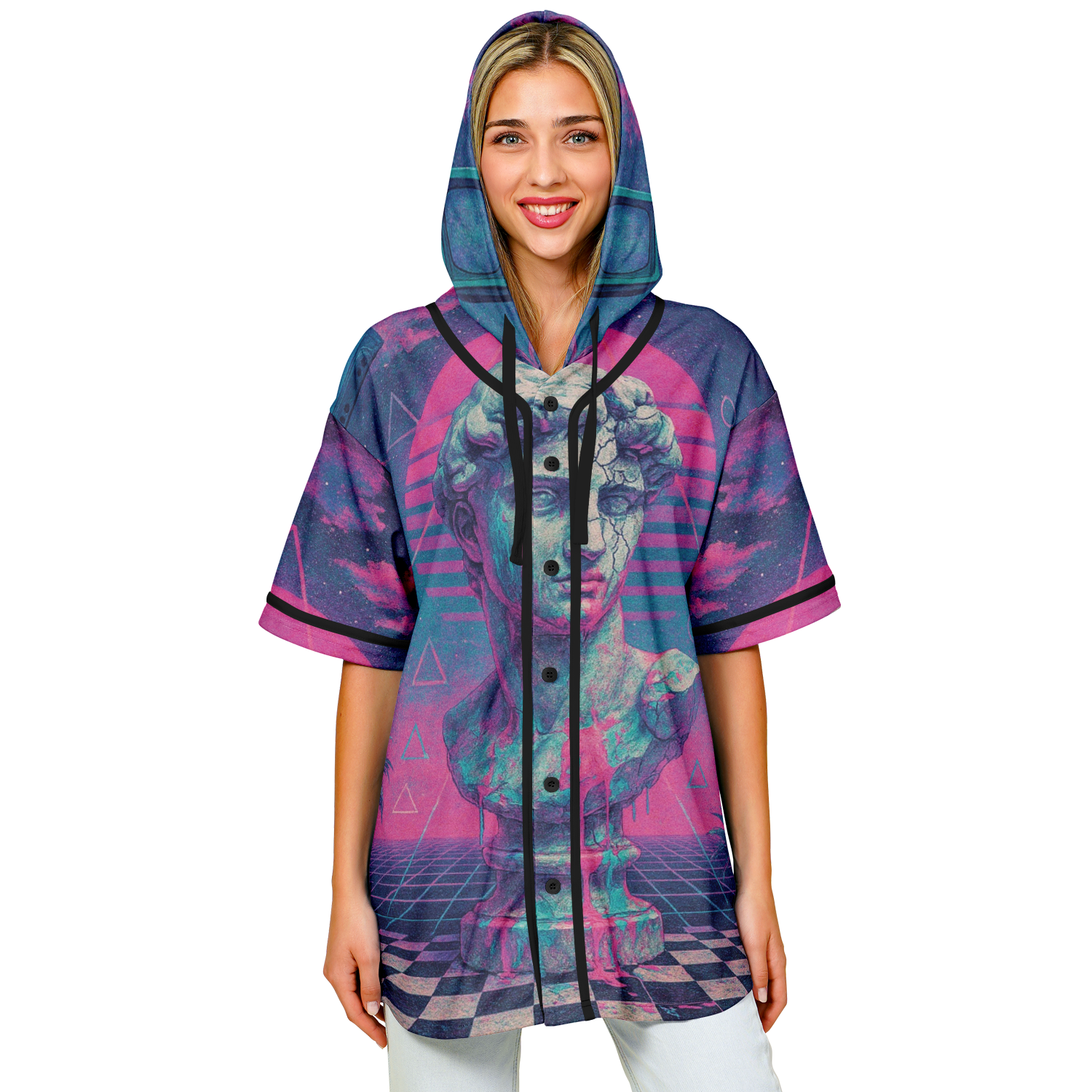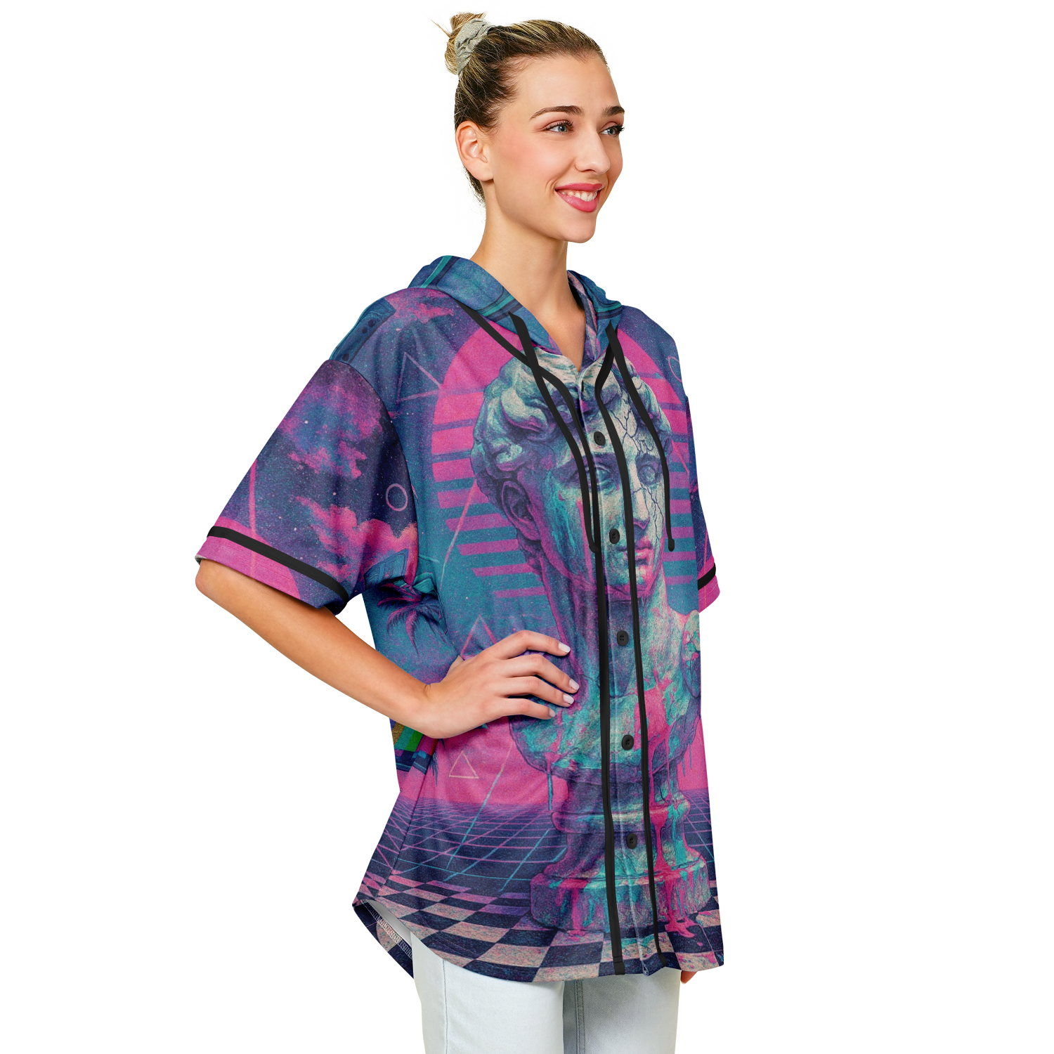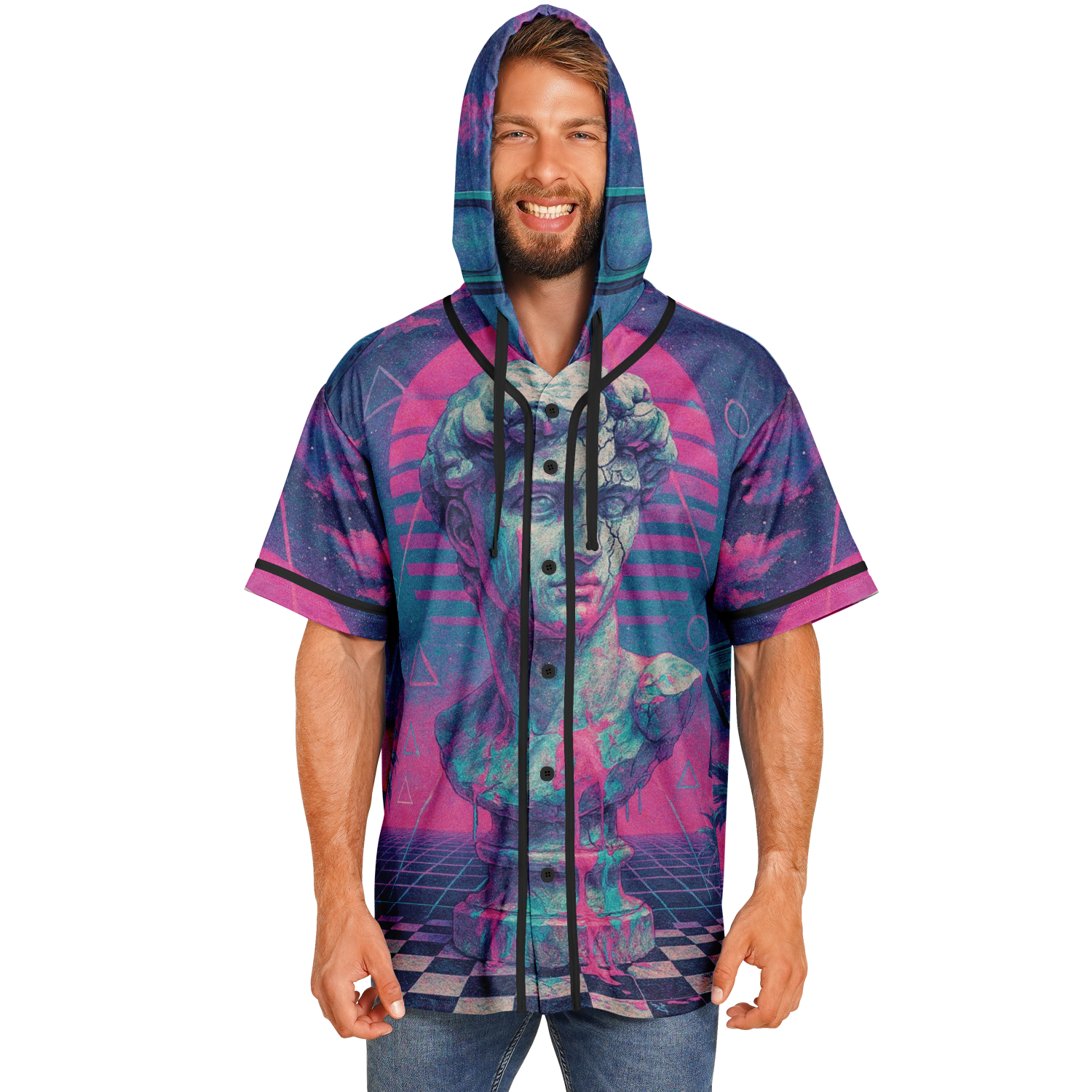 Break the mold with a garment that bridges the gap between classic athletic wear and modern street style. This innovative piece takes the timeless silhouette of a traditional baseball button down and remixes it with the relaxed comfort of a hoodie, creating a versatile look that stands out in any crowd.