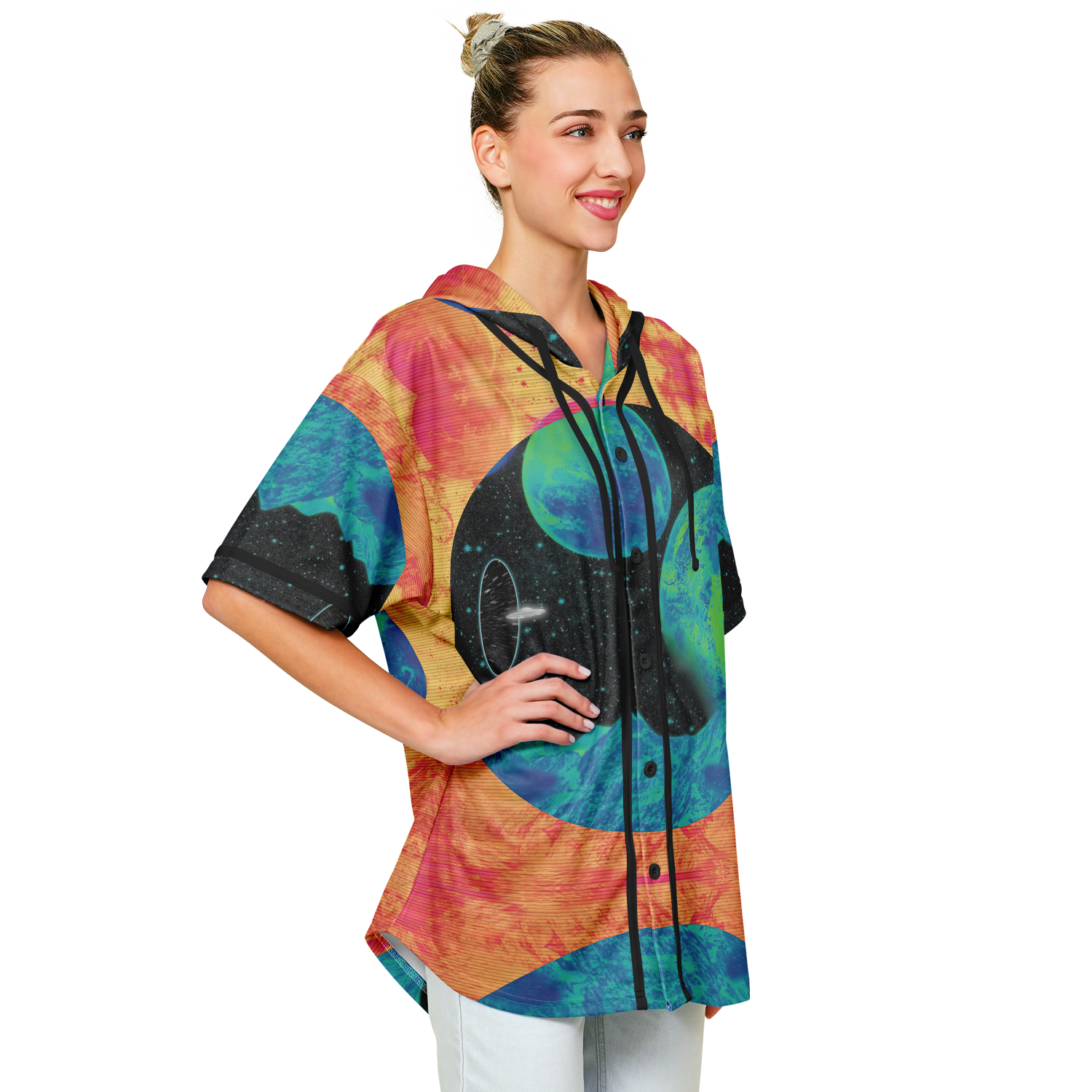 Break the mold with a garment that bridges the gap between classic athletic wear and modern street style. This innovative piece takes the timeless silhouette of a traditional baseball button down and remixes it with the relaxed comfort of a hoodie, creating a versatile look that stands out in any crowd.