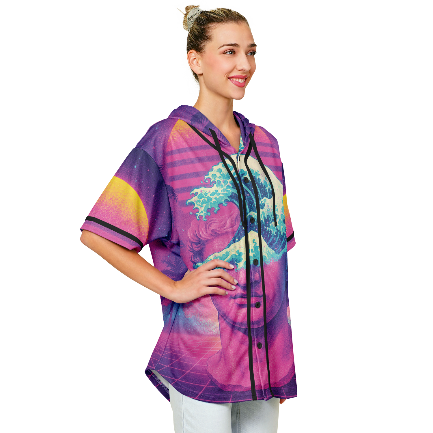 Break the mold with a garment that bridges the gap between classic athletic wear and modern street style. This innovative piece takes the timeless silhouette of a traditional baseball button down and remixes it with the relaxed comfort of a hoodie, creating a versatile look that stands out in any crowd.