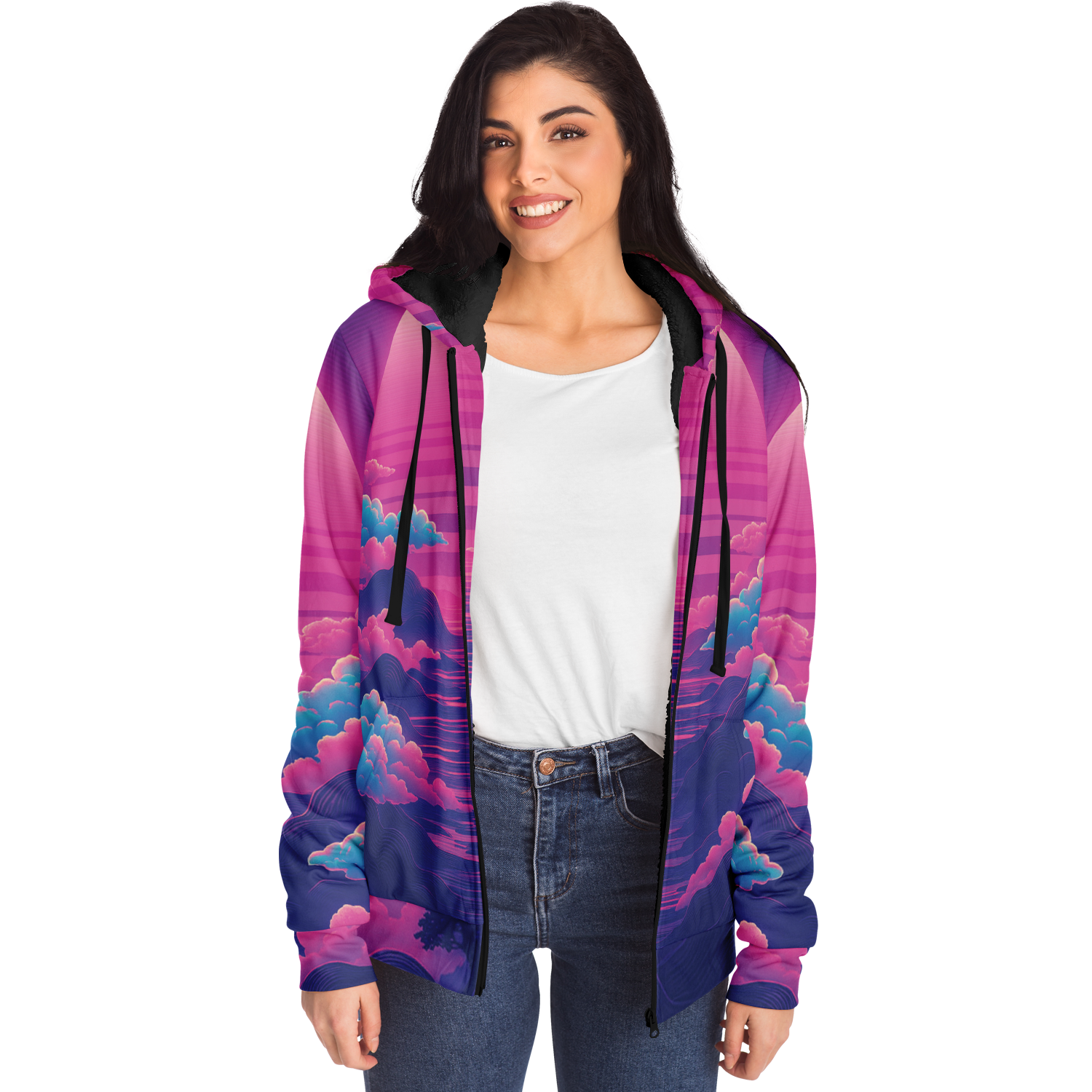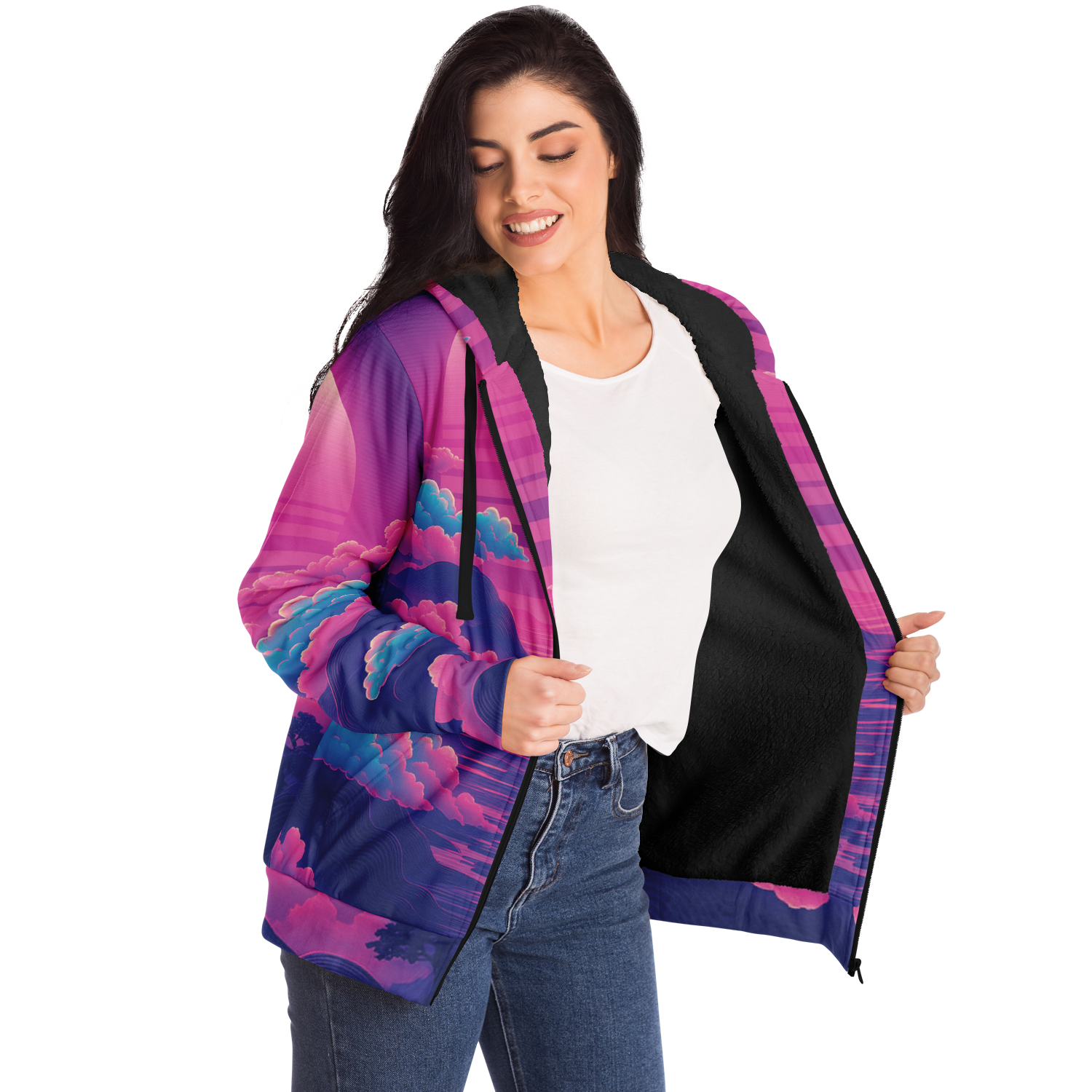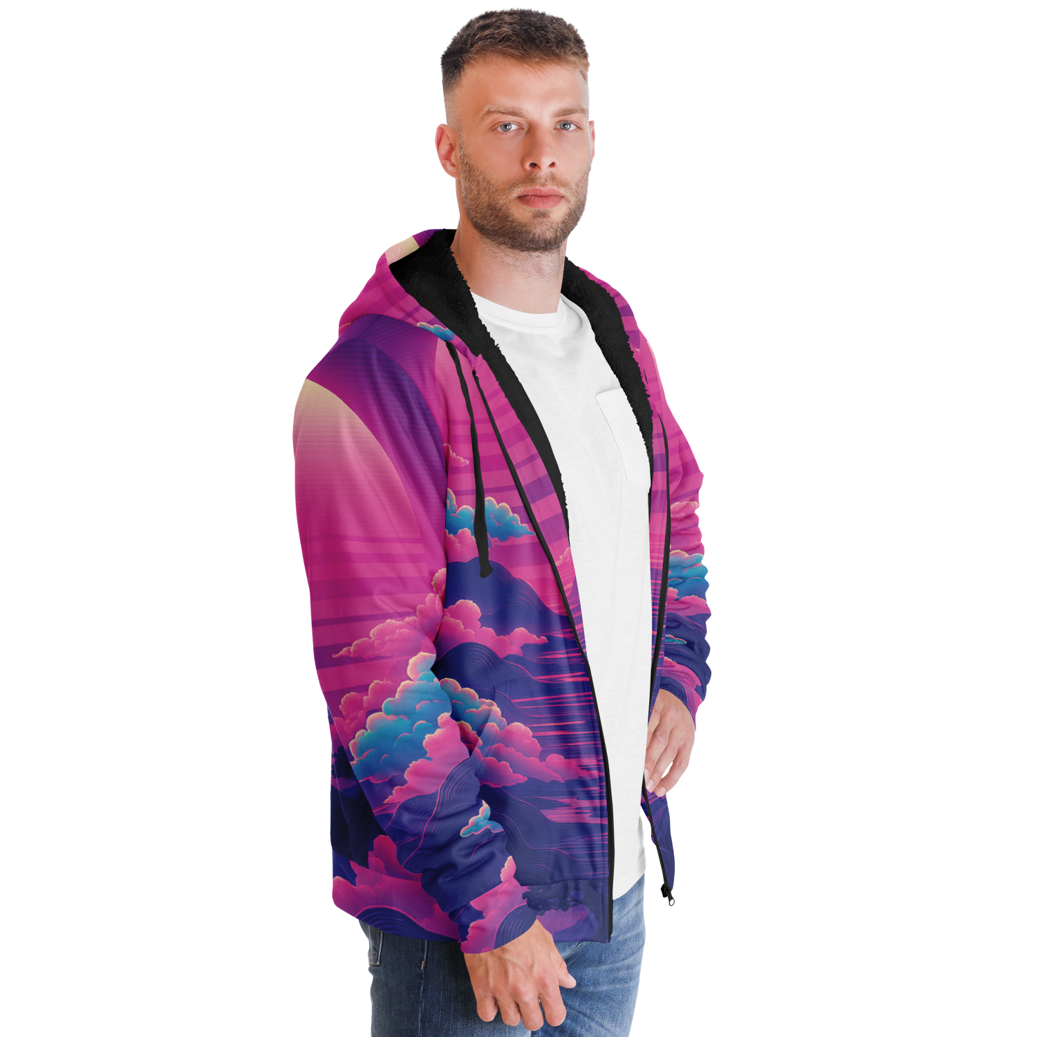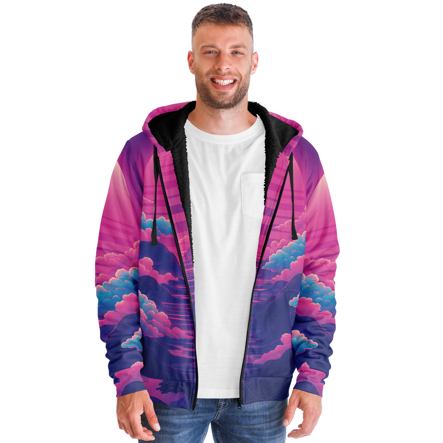 • Our sherpa fleece zip-up hoodies are an absolute favorite! The super soft and cozy lining on the inside is incredibly comfortable and will keep you warm even in the winter! Each panel is individually printed, cut, and sewn to ensure a flawless graphic with no imperfections.