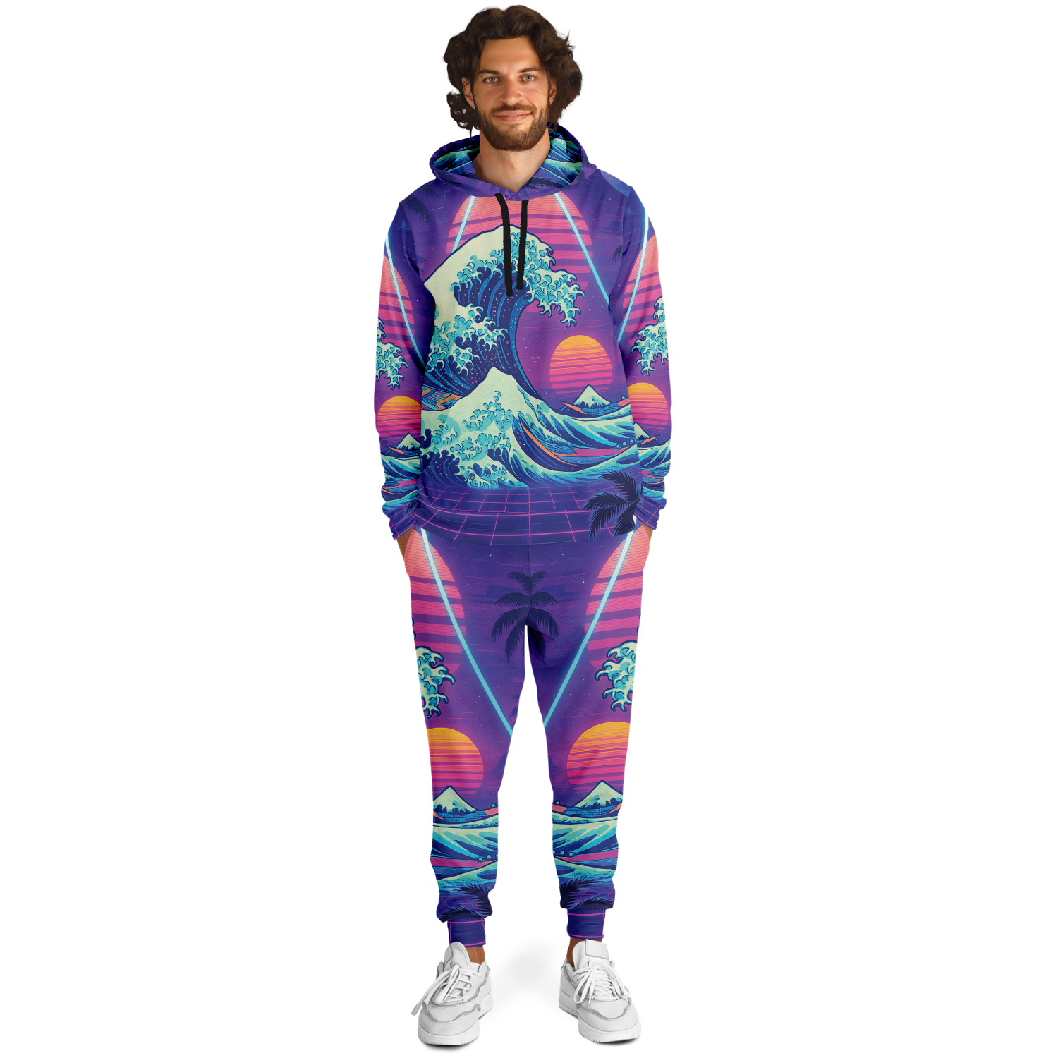 • Cozy meets fashion in this zip-hoodie and jogger set. Both garments are handmade with soft, brushed fleece on the inside and durable, soft as cotton polyester on the outside making this set incredibly comfortable while ensuring a vivid print.