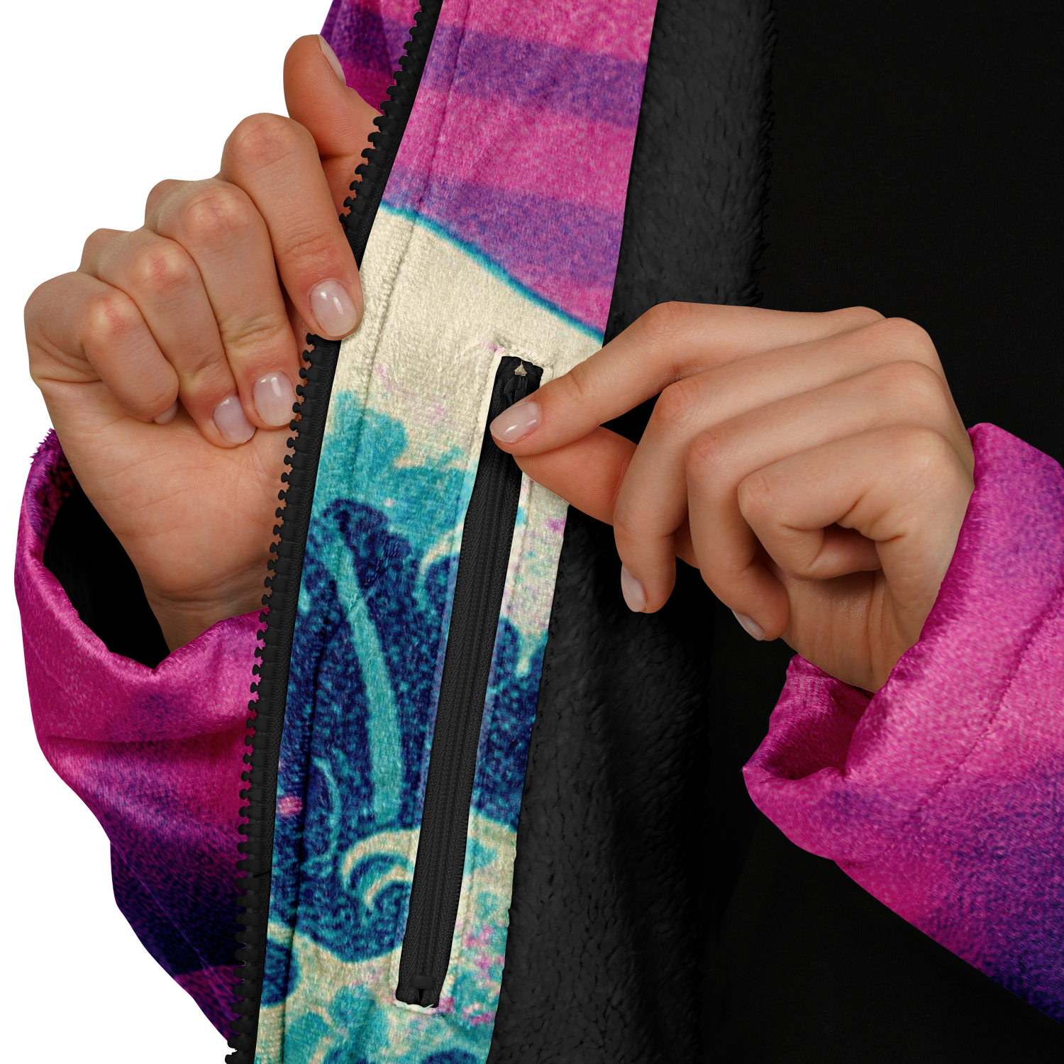 • Stay warm and stylish at any event with our festival zip-up cloak, available in black or white sherpa. Crafted from luxurious micro-mink 100% polyester with a fluffy microfleece polyester inner lining, this cloak offers exceptional comfort and warmth. Its functional design includes a front closure zipper, heavy drawstrings with gunmetal details, and multiple pockets for added convenience. Perfect for festivals or outdoor gatherings, this cloak combines practicality and style, making it a versatile addition to your wardrobe.