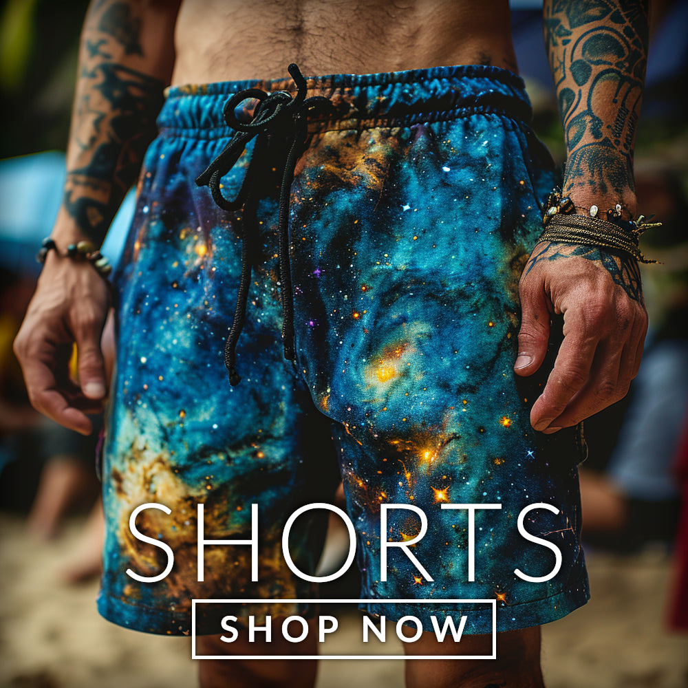 Dive into the electrifying realm of men's festival clothing at Azimuth Clothing, where our curated collection is meticulously crafted to enhance your festival experience. Immerse yourself in a fusion of style and comfort, from psychedelic patterns to mesmerizing synthwave and vaporwave themes, each piece designed to make a statement. Gear up for the festivities with our diverse range: