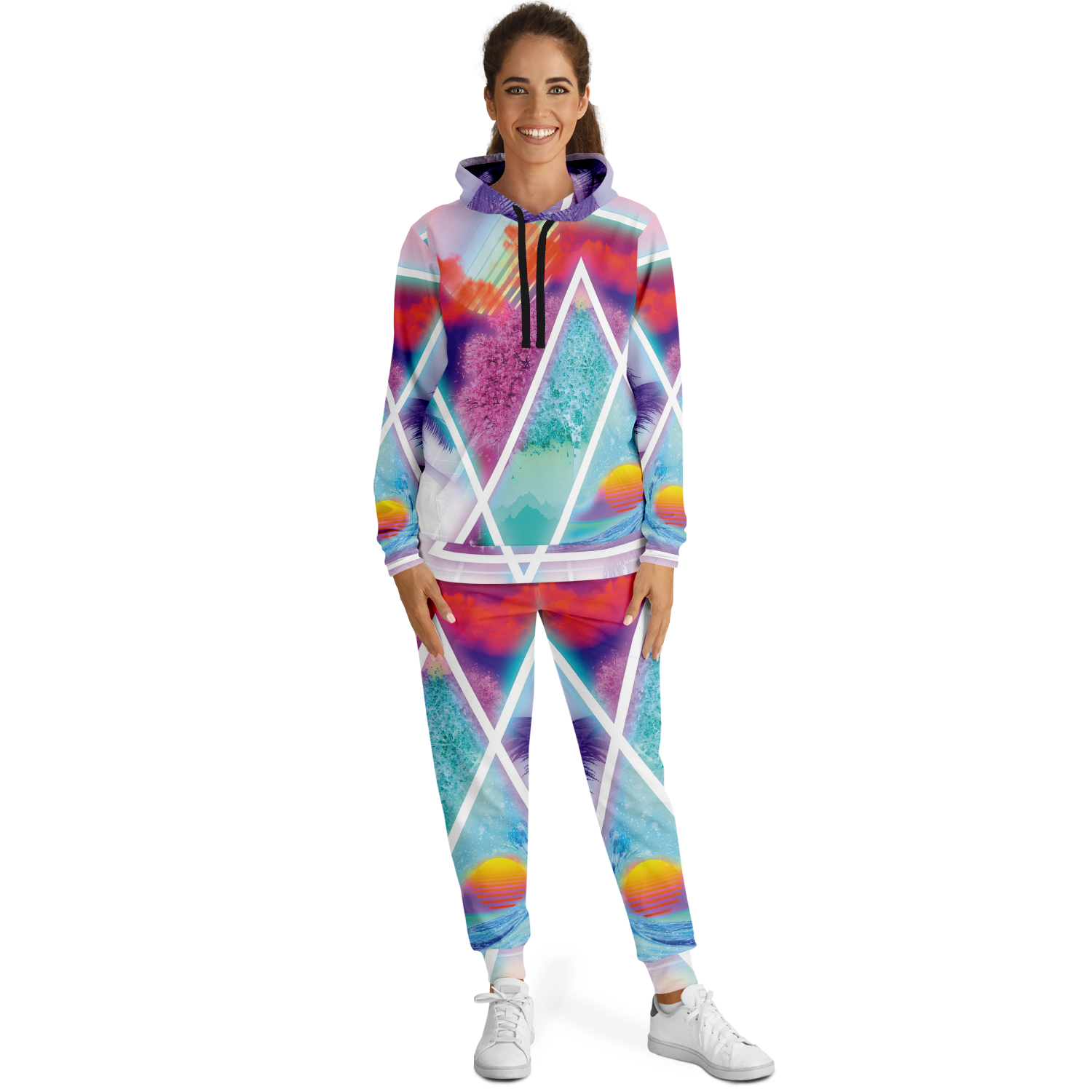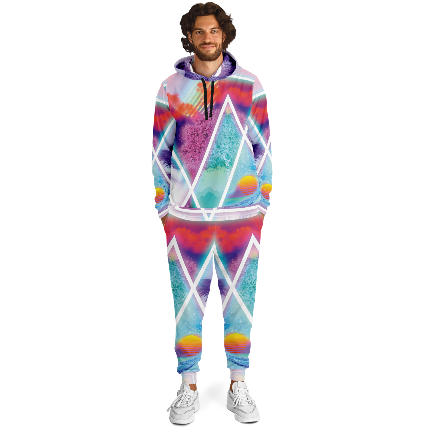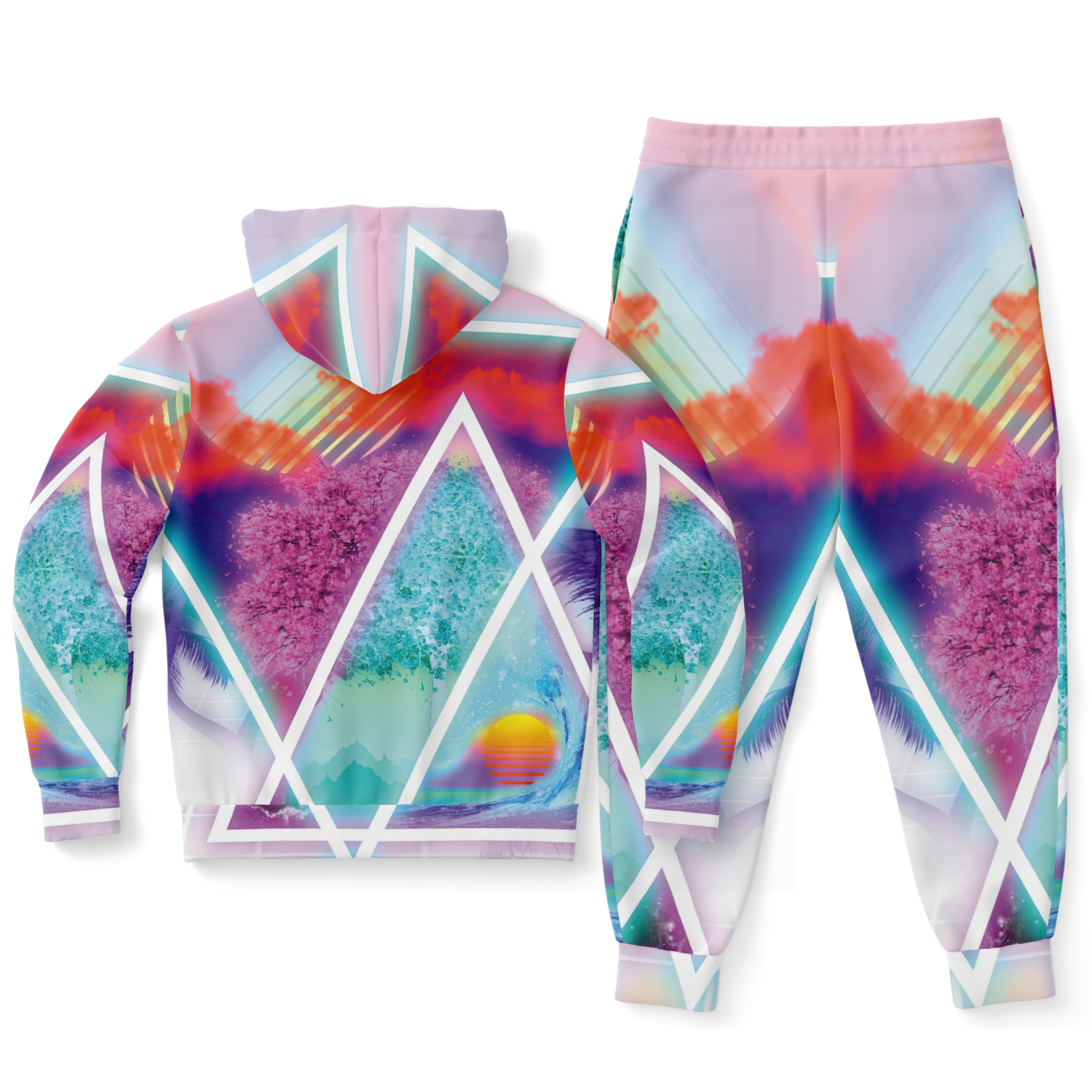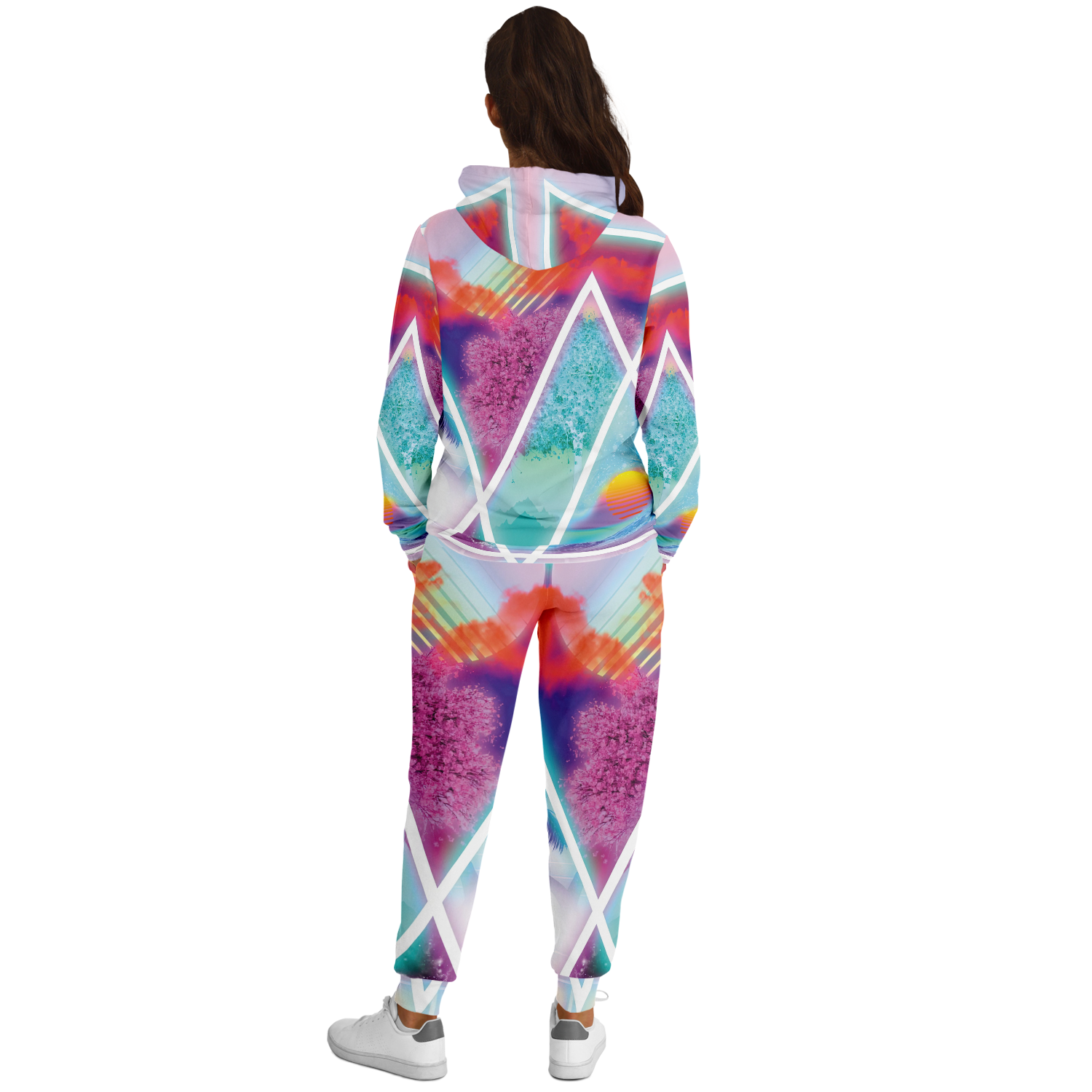 • Cozy meets fashion in this zip-hoodie and jogger set. Both garments are handmade with soft, brushed fleece on the inside and durable, soft as cotton polyester on the outside making this set incredibly comfortable while ensuring a vivid print.