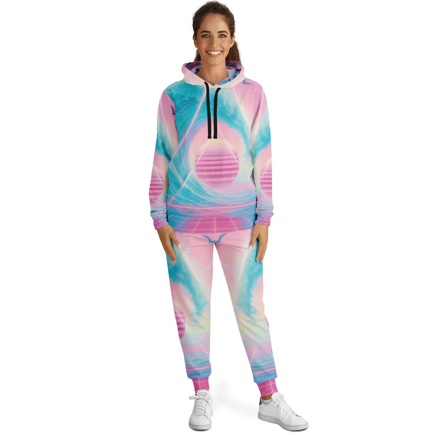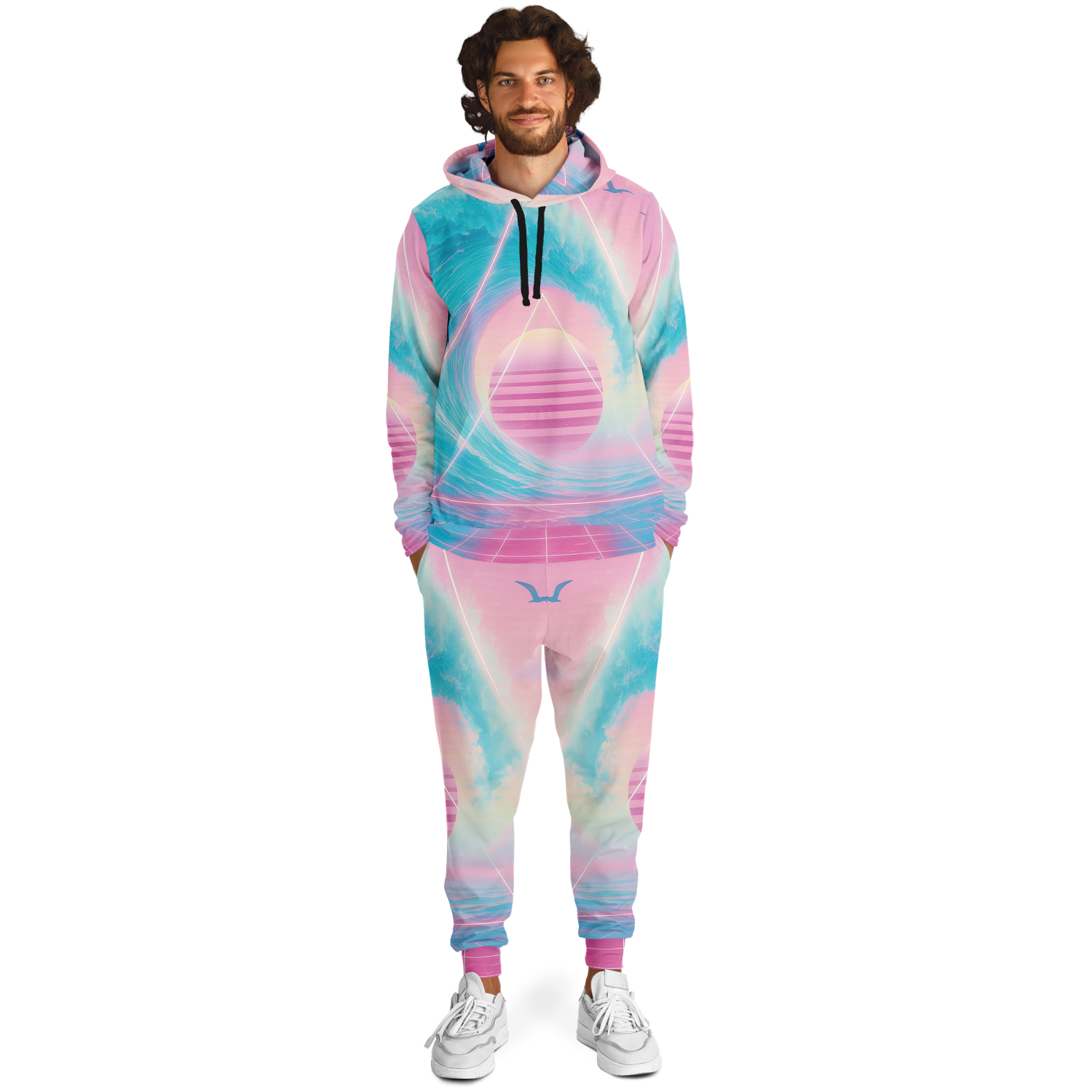 • Cozy meets fashion in this zip-hoodie and jogger set. Both garments are handmade with soft, brushed fleece on the inside and durable, soft as cotton polyester on the outside making this set incredibly comfortable while ensuring a vivid print.