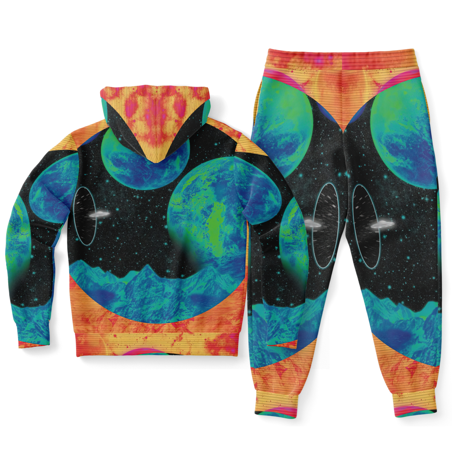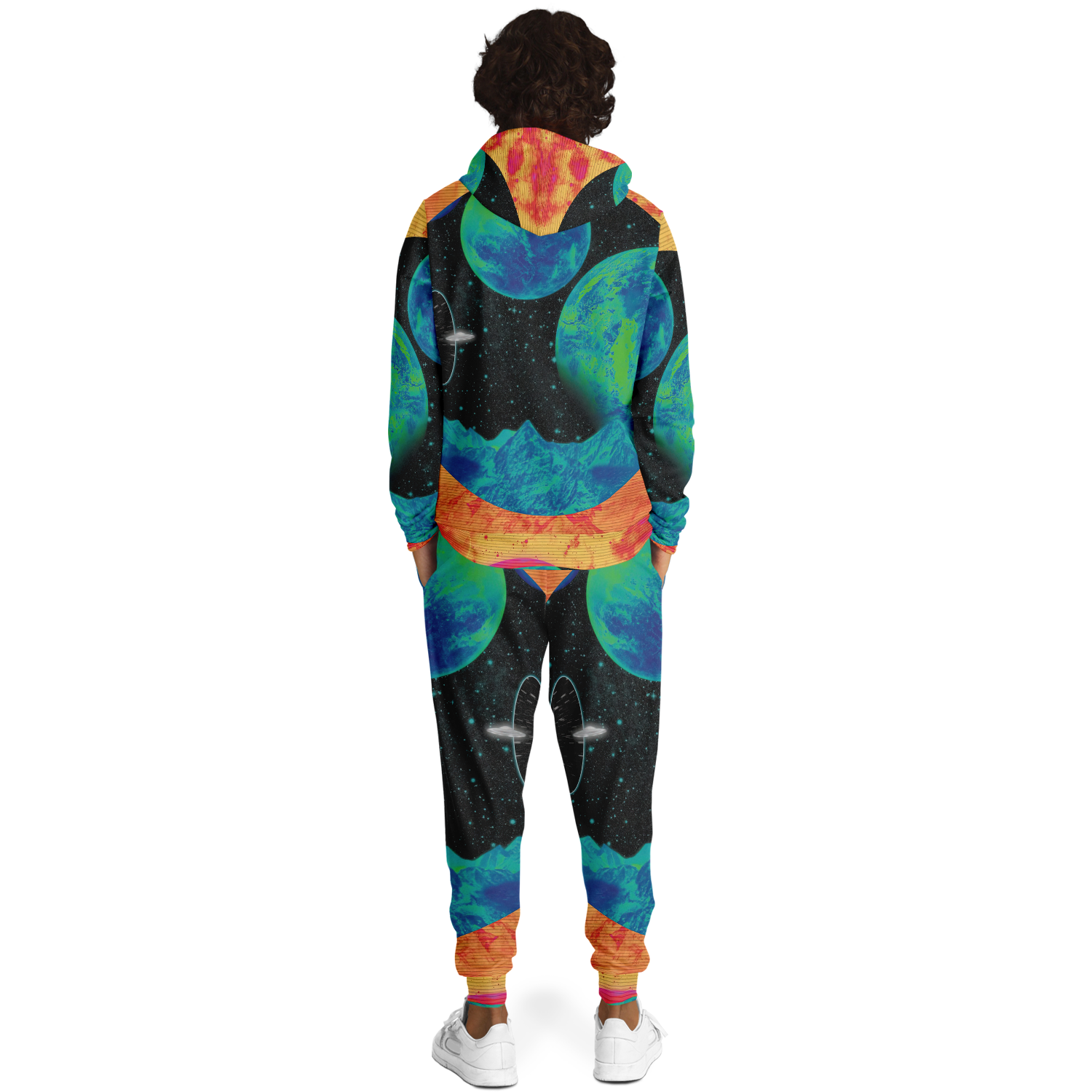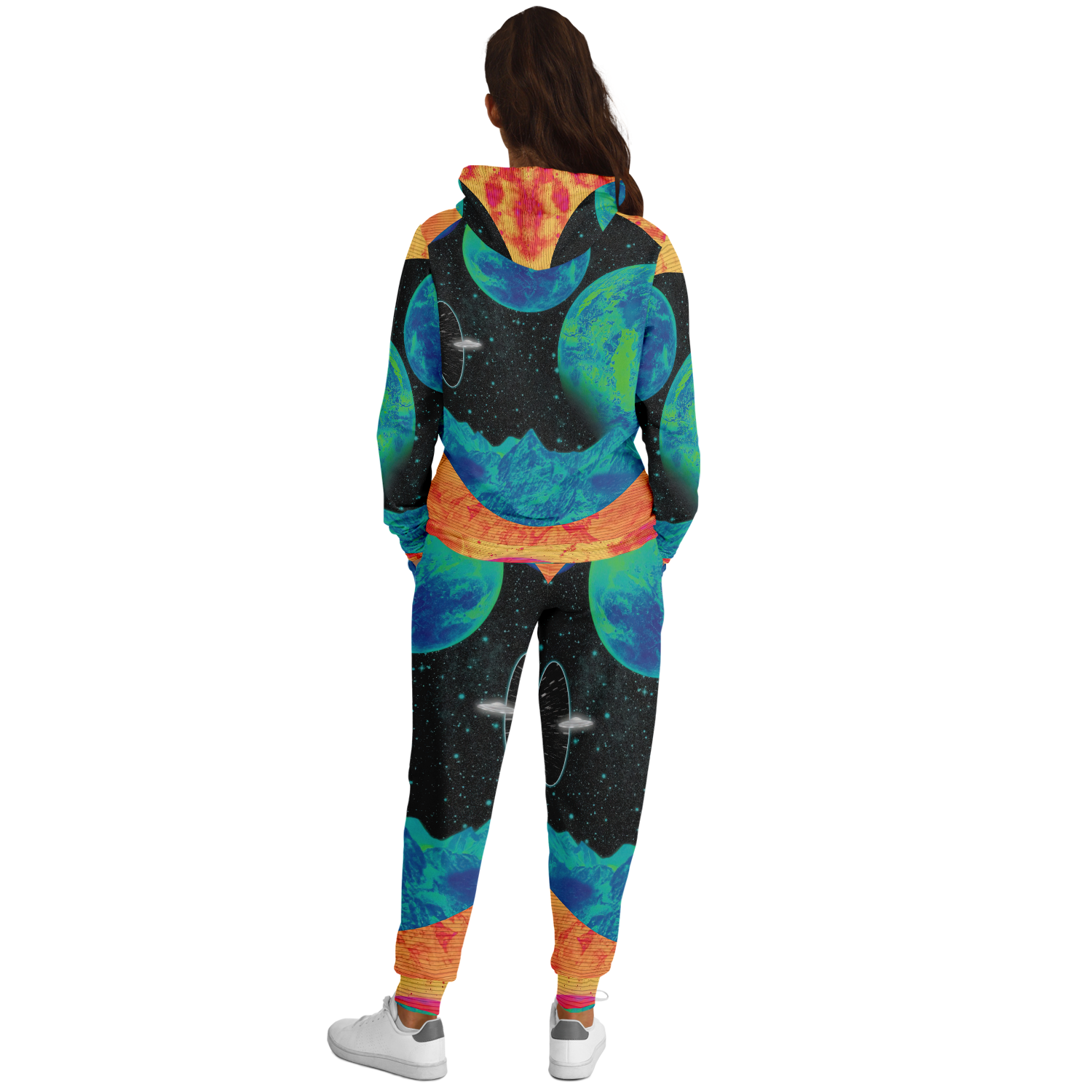 • Cozy meets fashion in this zip-hoodie and jogger set. Both garments are handmade with soft, brushed fleece on the inside and durable, soft as cotton polyester on the outside making this set incredibly comfortable while ensuring a vivid print.